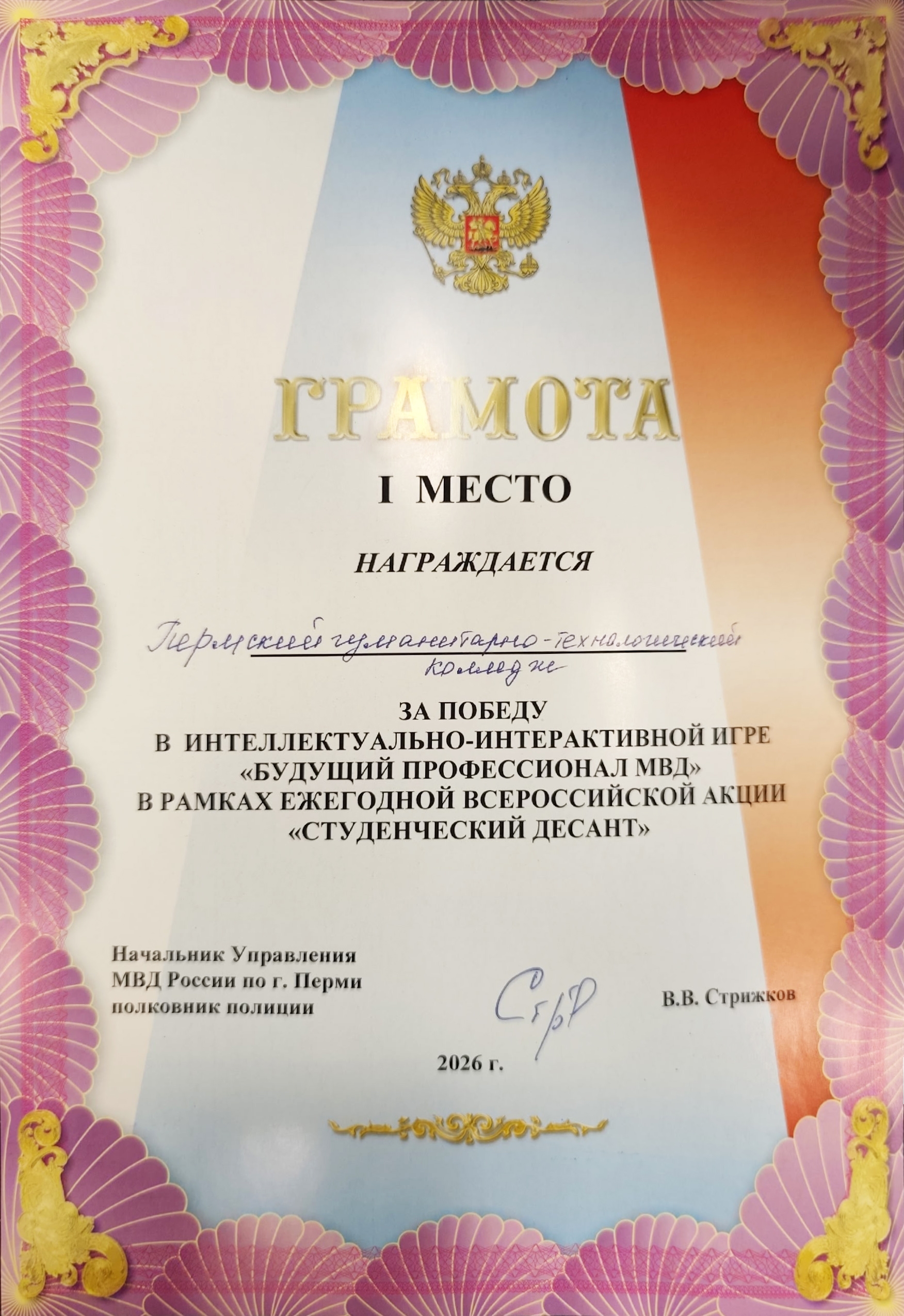 Команда Пермского гуманитарно-технологического колледжа заняла 1 место в интеллектуально-интерактивной игре «Будущий профессионал МВД».